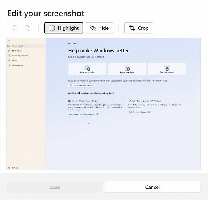 - Verbeterde schermafbeelding en bewerkingsmogelijkheden: Maak eenvoudig schermafbeeldingen en markeer, verberg of crop delen voordat u de feedback verstuurt.