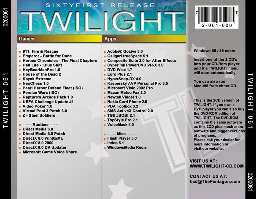 Goh... wat was dat een spannende tijd. Dan kon je via via voor 60 gulden aan de CD komen. En dan die weer branden met je 2x speed brander van 700 gulden. Natuurlijk niks starten op je PC anders had je een buffer overflow hehehe